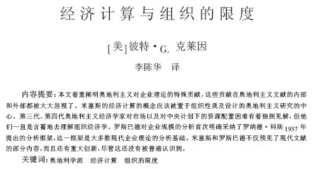 Here is a Chinese translation of my 1996 article “Economic Calculation and the Limits of Organization,” one of my favorites. It appears in Comparative Economic and Social Systems 116, no. 6 (2004): 70-78. The journal is edited by Wu Jinglian, an important Chinese economist specializing in economic reform. (Thanks to Chenhua Li for the translation and Kuo-Yang Tang for background information.)