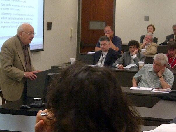 Harold Demsetz gave an interesting and entertaining presentation yesterday at ISNIE, in a session honoring Yoram Barzel on his 80th birthday. Demsetz’s remarks made me wonder if we should ban “firm” as well. Demsetz pointed out, quite rightly, that Coase (1937) defines the firm in terms of the employment relation. A one-person operation, in this definition, is not a firm, and vertical integration deals with the question of adding producers of intermediate products to the firm’s employment roll. Demsetz thinks independent contractors are firms, and hence it makes little sense to speak of “firm” and “market” as alternatives, as Coase does. (Oliver Williamson, during an earlier session, noted that Coase expressed more interest in intermediate product markets in his 1988 article than in “The Nature of the Firm.”)