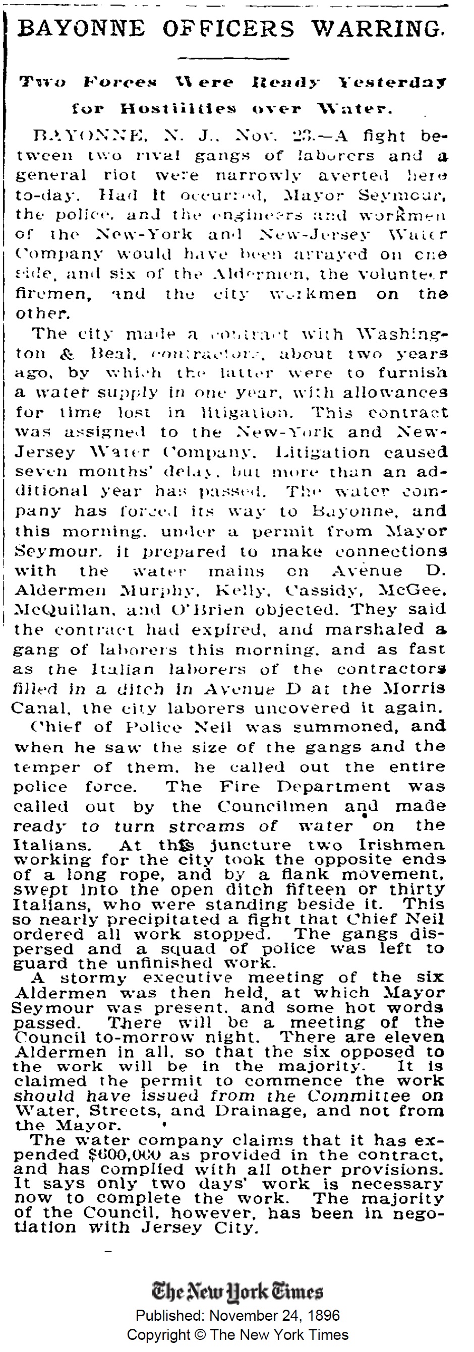 The context is a dispute over a contract for the supply of water to Bayonne, NJ., circa 1896, as reported in The First History of Bayonne, NJ (1904: 92):